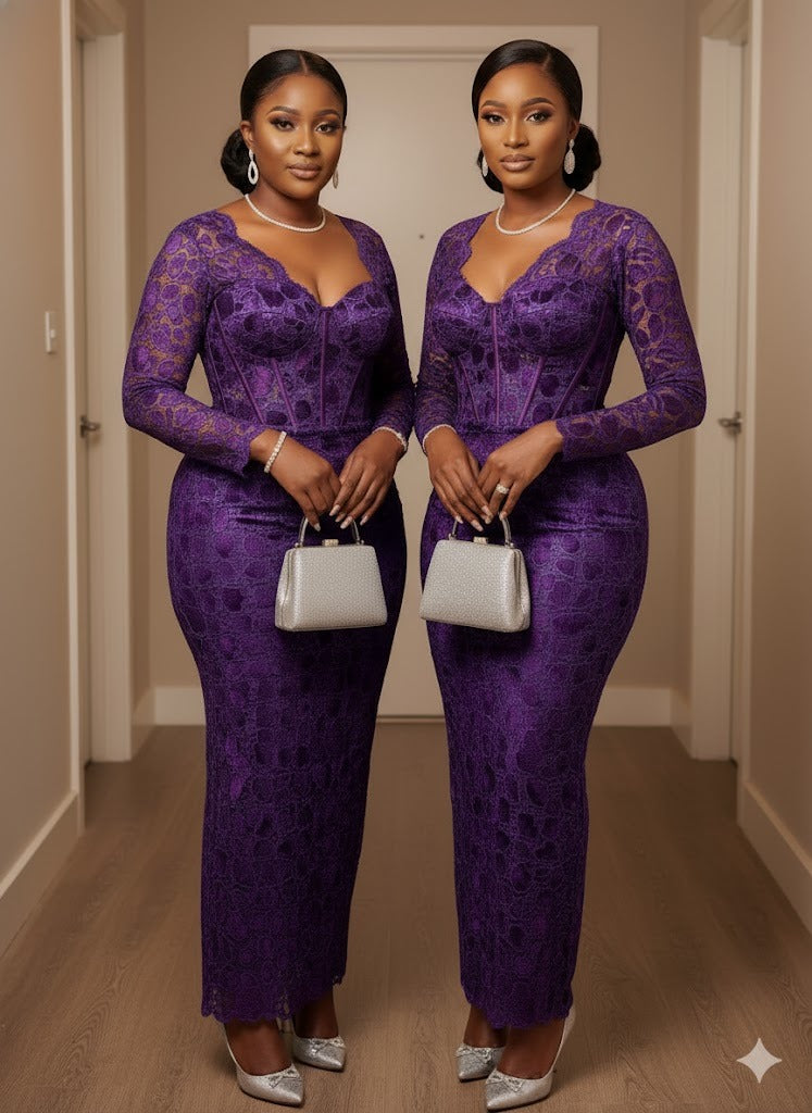 Velvet Flocking Lace at £100/5yrds - Available in purple and coffee brown.